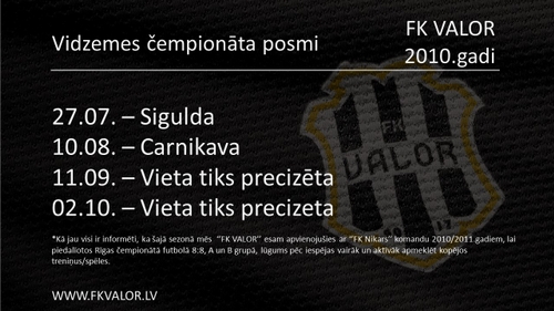 FK VALOR/Ropaži komanda sāk savu dalību Vidzemes čempionātā 27.jūlijā Siguldā 2010.gada vecuma grupā.